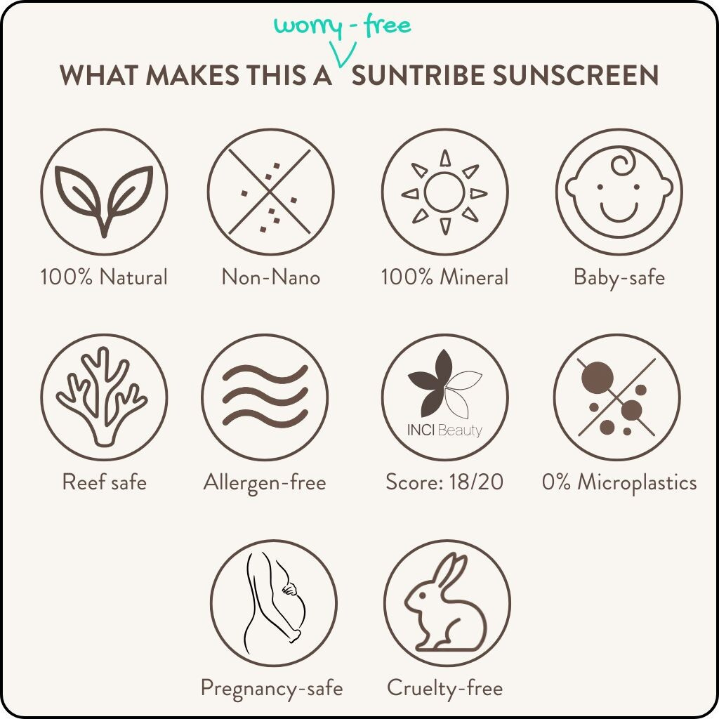 Opalovací krém obsahuje minerální UV filtr (non-nano částice oxidu zinečnatého), který je podle výzkumů nejbezpečnější UV filtr pro zdraví lidí, korálů a podmořského světa.