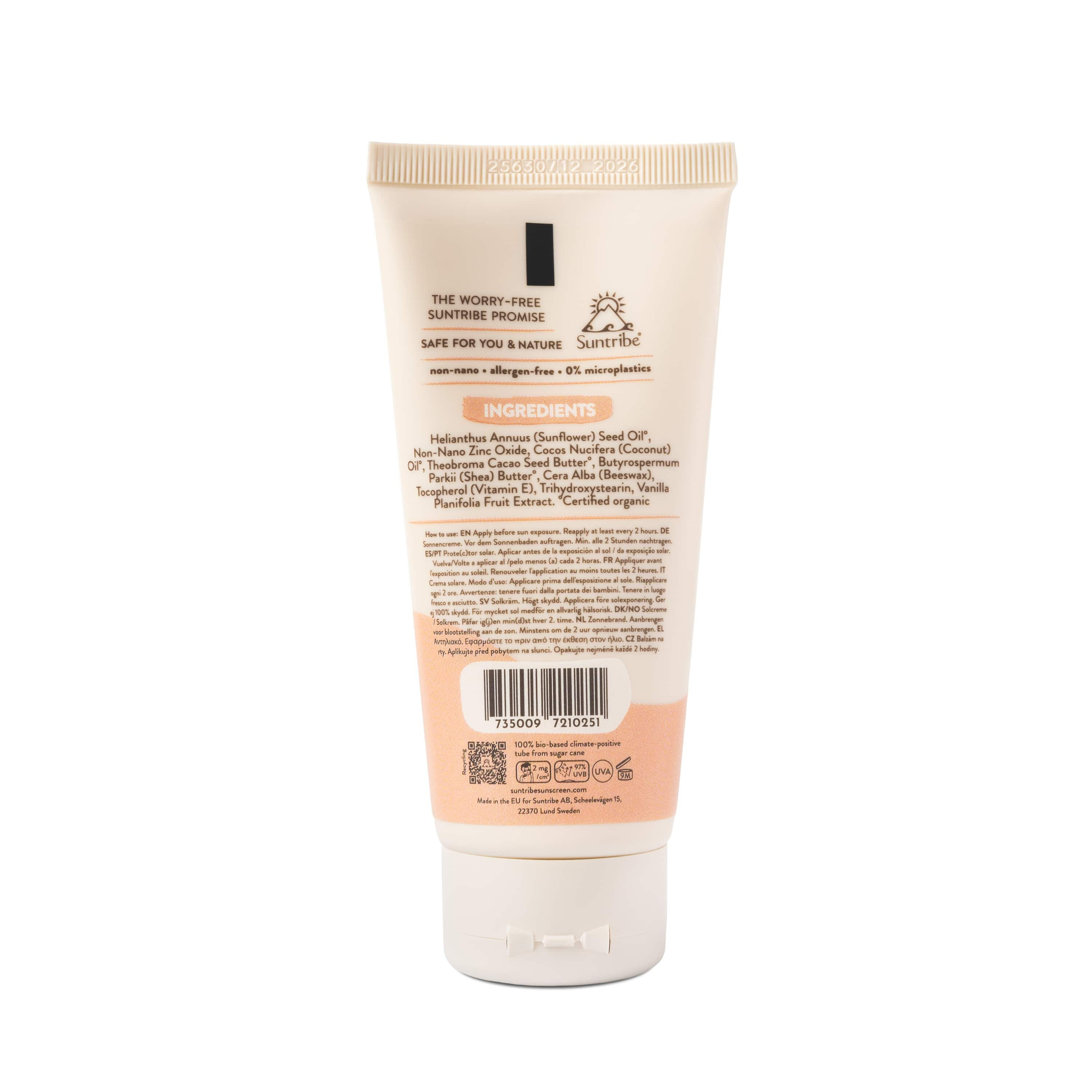 Dodává se v inovativní trubici z cukrové třtiny a zanechává slabý bílý film, takže snadno uvidíte, kde je vaše dítě chráněno před sluncem. Jemný přírodní opalovací krém s lahodnou vůní vanilky, díky které je tento opalovací krém neodolatelný pro děti i dospělé.