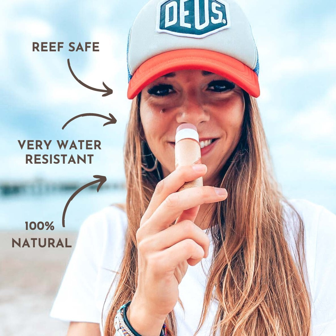 Opalovací tyčinka obsahuje minerální UV filtr (non-nano částice oxidu zinečnatého), který je podle výzkumů nejbezpečnější UV filtr pro zdraví lidí, korálů a podmořského světa.