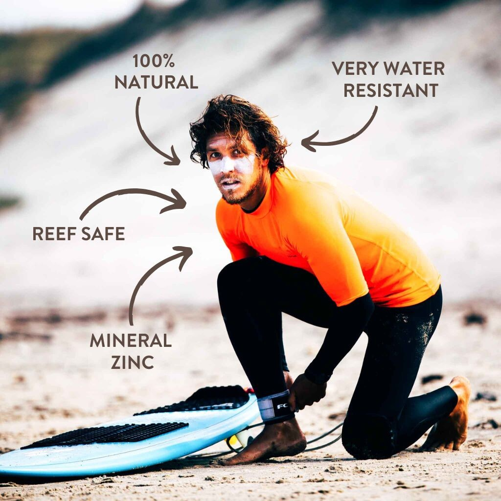 Poznejte přírodní zinkový opalovací krém, který odolá velkým vlnám ve vodě nebo potu při fyzicky náročném sportu. Neobsahuje žádné chemické složky (které poškozují korálové útesy) a nepálí při kontaktu s očima. Tohle je ten nejlepší zinkový opalovací krém, který najdete na trhu.